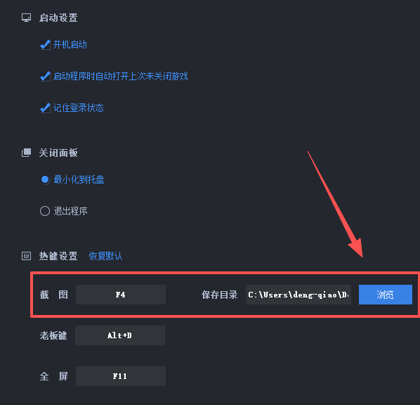 2、进入到常用设置界面后,找到右侧界面中【截图】右侧的【保存目录】选项,点击右侧的【浏览】按钮。
