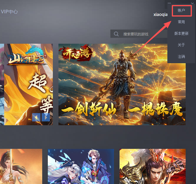 1、启动软件,登录自己的账号,然后点击顶部右上角的【三】图标,接着选择【账户】选项。