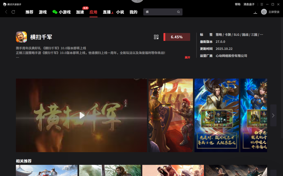 《横扫千军》是由心动倾情研发的全新策略国战手游,游戏在传统的三国策略玩法中首度加入“国”和“内政”的概念,并采用即时演算的军事战斗方式,让玩家可以在游戏中体验到更接近三国时期历史原貌的战争和风云变幻。游戏拥有极高的策略性和竞技性,玩家可以带领全新天赋的三国武将们驰骋中原、培养建设自己的国土、率领千军万马攻城略地,最终帮助自己所属的国家成就一统天下的霸业。