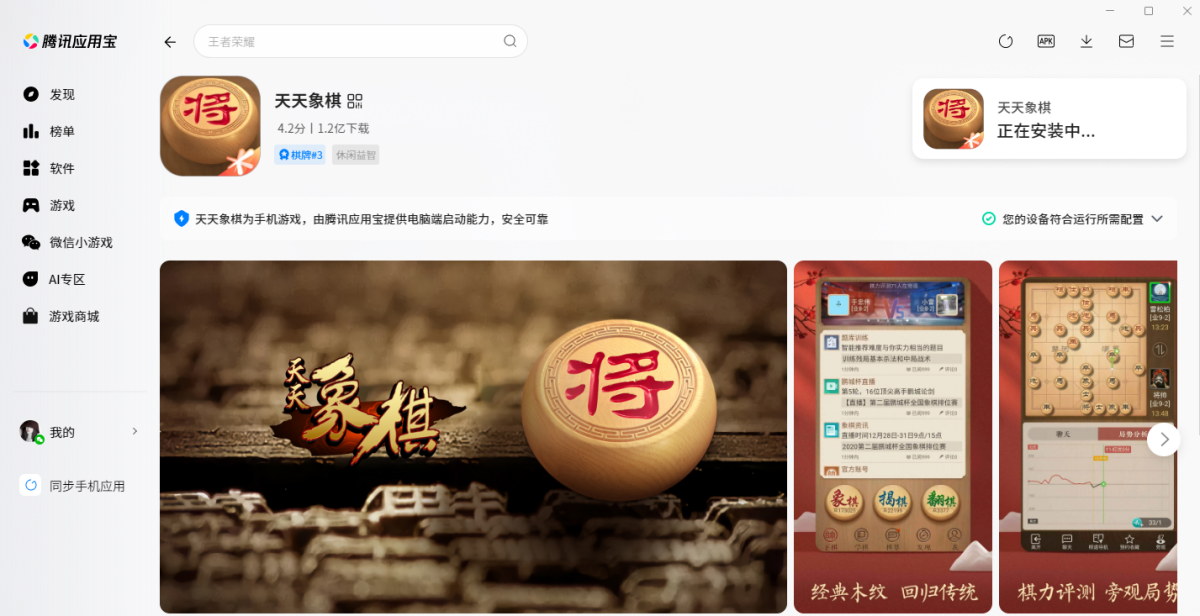 在星动下载站下载最新安装包,按提示先安装应用宝电脑版(已安装会直接调用打开,未安装应用宝时,手机APP无法独立在电脑上运行),应用宝安装完成后,进入应用宝,继续等待软件安装,完成之后登录账户即可开始使用