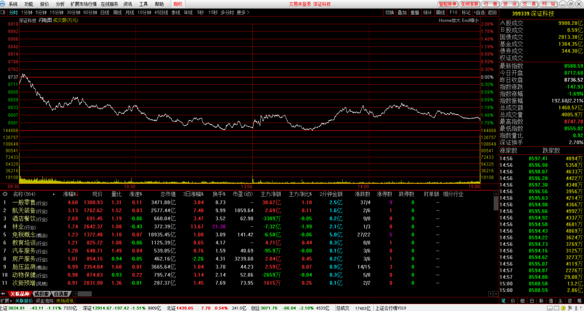 行情主站采集所有客户端的人气,按照一定算法统计出个股的关注度和共鸣度,告诉您近期市场关注的热点可能在哪里出现。