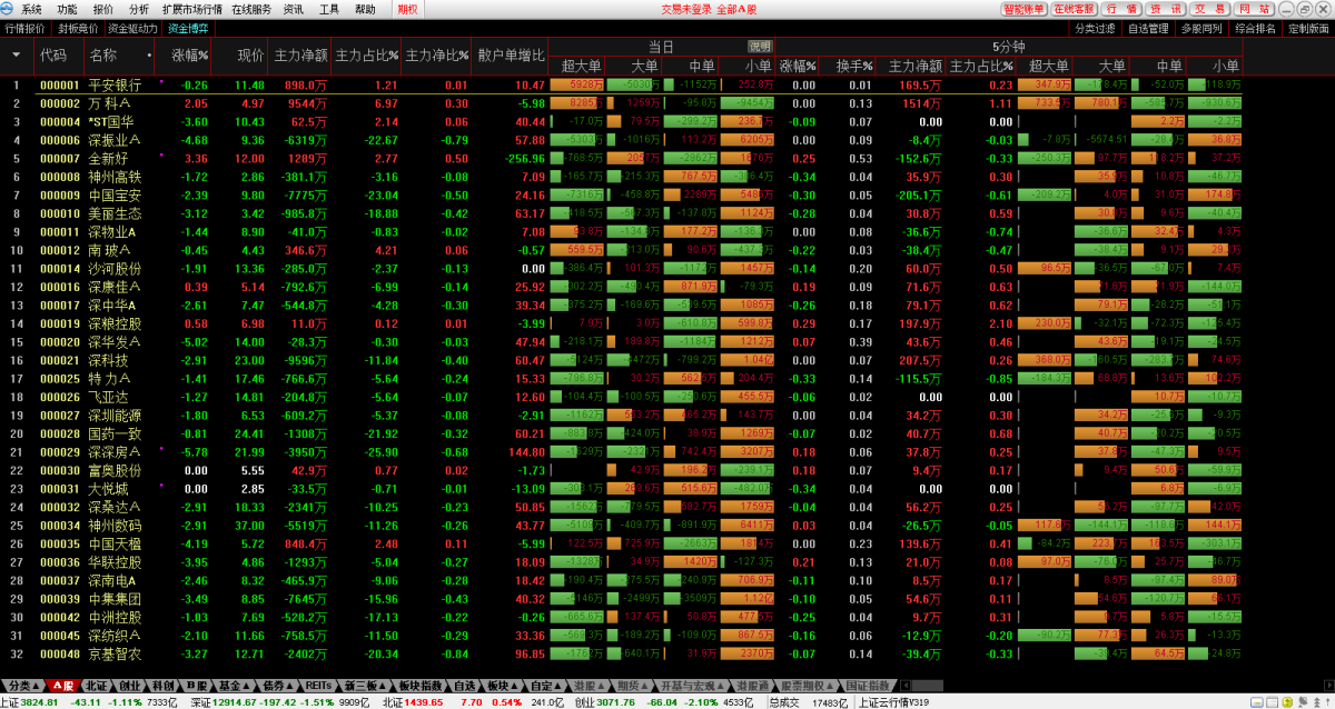 取补数据、整理清理数据等操作。当天数据的盘后转档可以方便地进行收盘。选股和测试等时数据不够时,系统会自动提示。