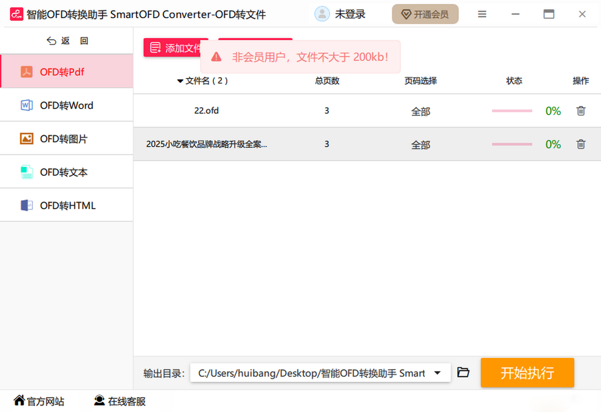 支持ofd转PDF、ofd转图片、ofd转Svg、ofd转Html、ofd转文本、ofd转Word等功能。 一键上传多个文件进行批量操作,省时 省力,拒绝重复,快速完成多个文件处 理,提高办公和学习效率