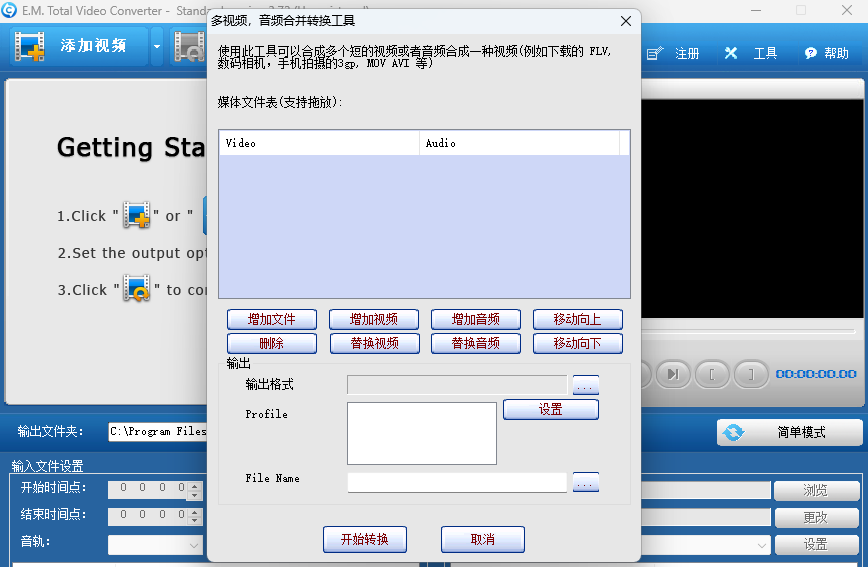 5.将多个文件或片段合并为一个文件,并在文件间添加过渡效果;将过大的文件分割成几段后输出,以适用不同设备。