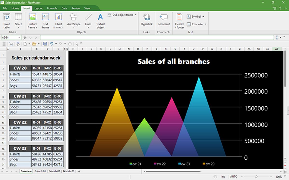 可以在任何操作系统上的任何版本的PlanMaker之间无损地交换工作表。