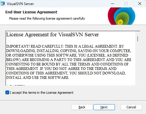 VisualSVN Server 被广泛认为是在 Windows 平台上设置 Subversion Server 的简便方法。它作为一个安装包提供,其中包含具有全部必需组件的最新版本。其安装过程非常简单,只需点击几下鼠标,您便能设置功能齐全、开箱即用的 Subversion 服务器。