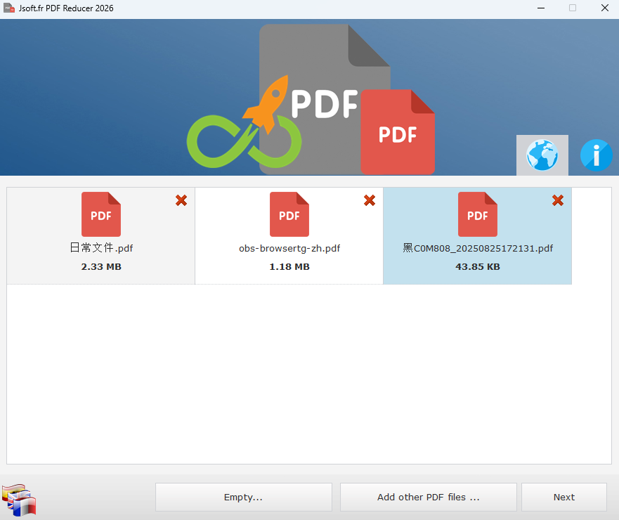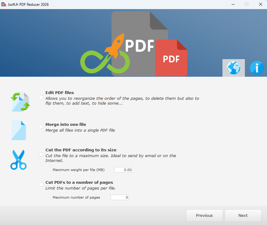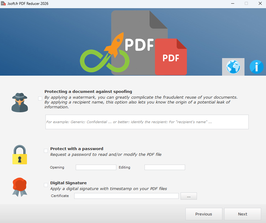 Jsoft PDF Reducer是一款功能实用的PDF压缩软件,能够通过压缩和缩小图像使PDF文件减少体积,在压缩的同时还提供PDF编辑功能,可以在页面添加新的文字内容,可以删除图像内容等,jsoft PDF Reducer支持合并和拆分PDF,软件支持添加数字签名、水印、密码,保护PDF文档安全。