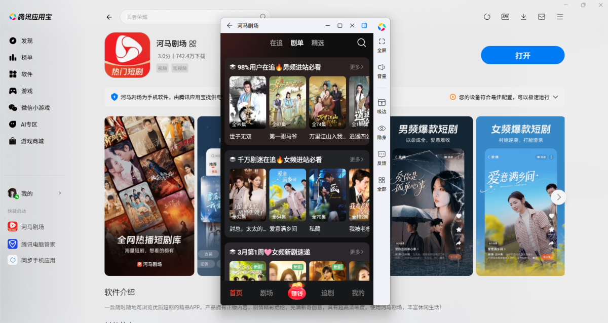 在星动下载站下载最新安装包,按提示先安装应用宝电脑版(已安装会直接调用打开,未安装应用宝时,手机APP无法独立在电脑上运行),应用宝安装完成后,进入应用宝,继续等待软件安装,完成之后登录账户即可开始使用