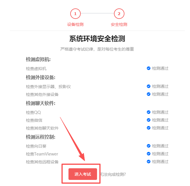 1、首先进行设备检测与系统安全检测后,点击【进入考试】,