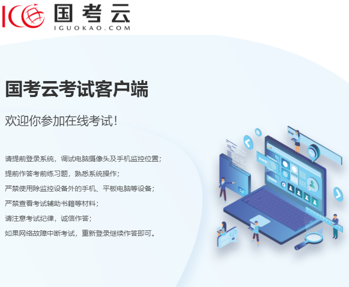 请提前登录系统,调试电脑摄像头及手机监控位置;