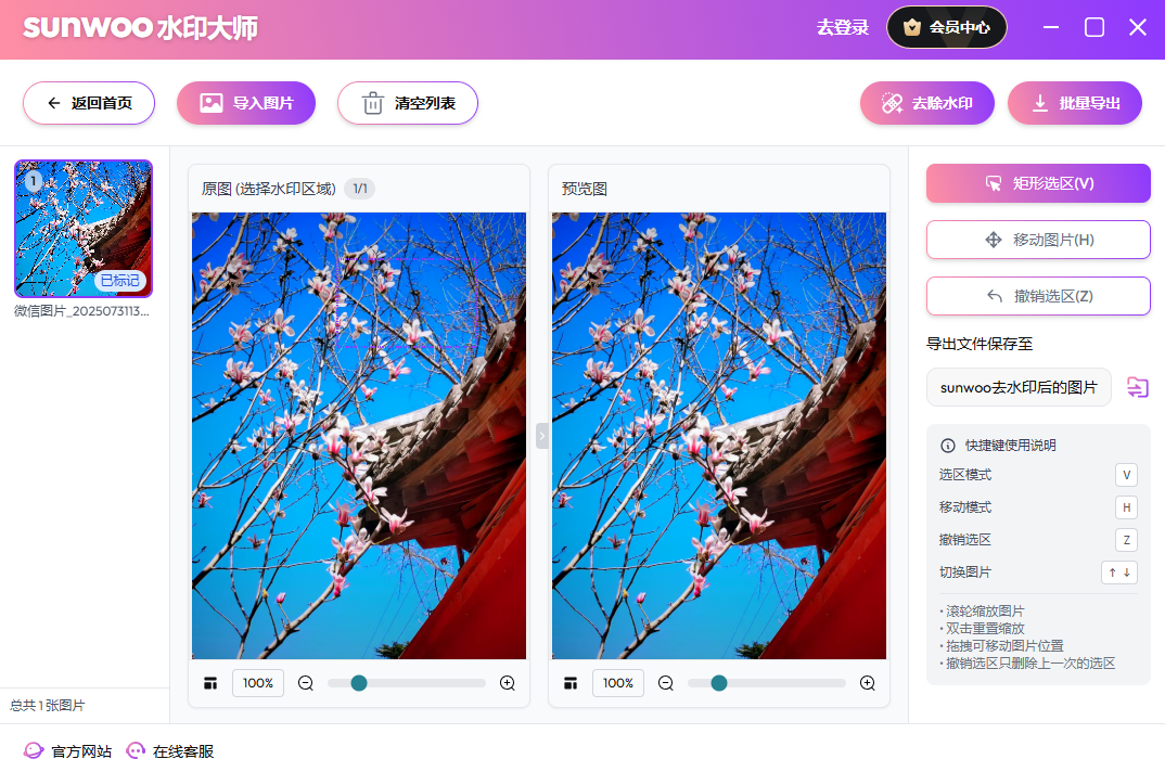 sunwoo 水印大师集成了先进的AI大模型能力,不仅可以对文字水印进行智能识别并精准去除,还能对物体对象进行深度分析,通过对象层级去水印,智能去除各类水印。