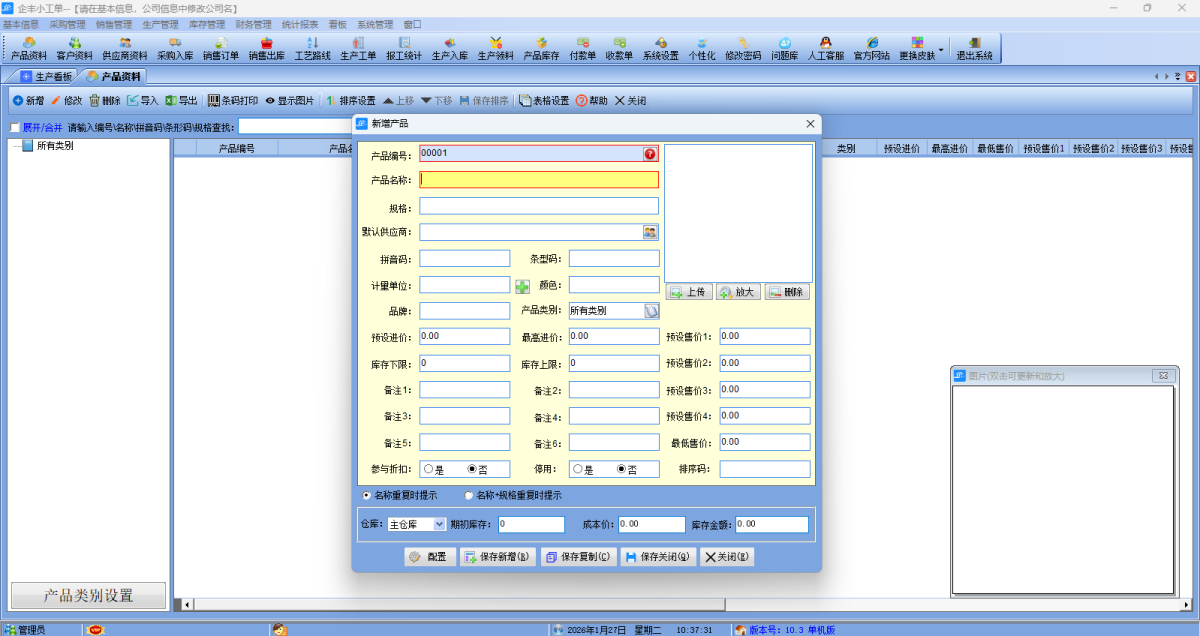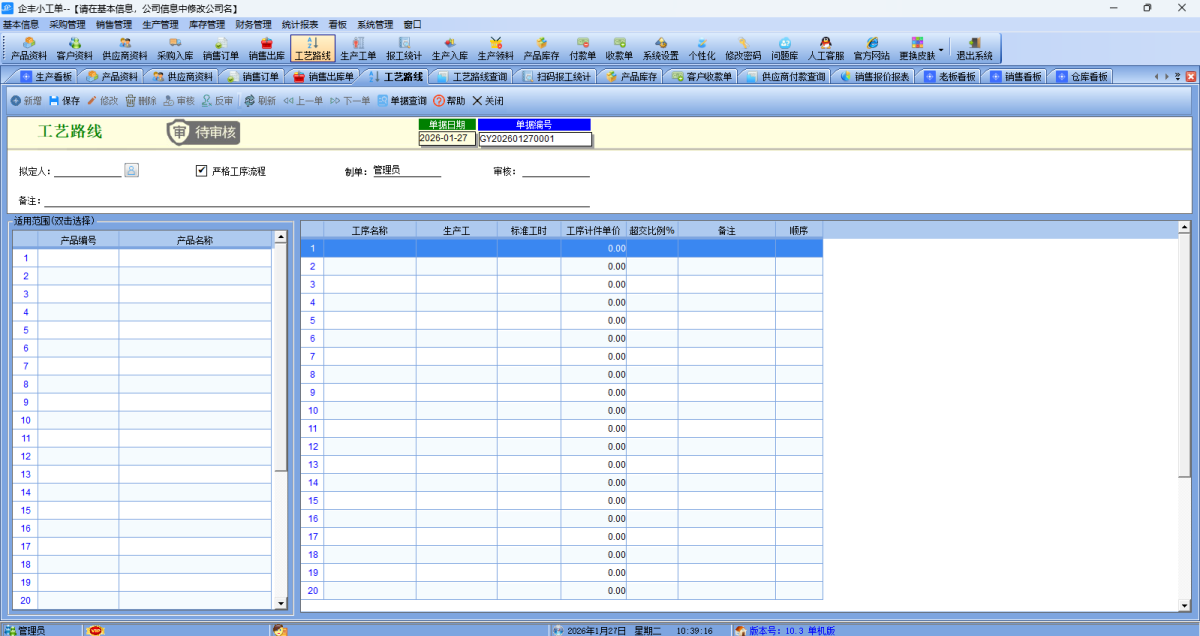 基本信息:产品信息,供应商,客户,产品分类,工序设置,BOM,仓库等基本信息的设置;