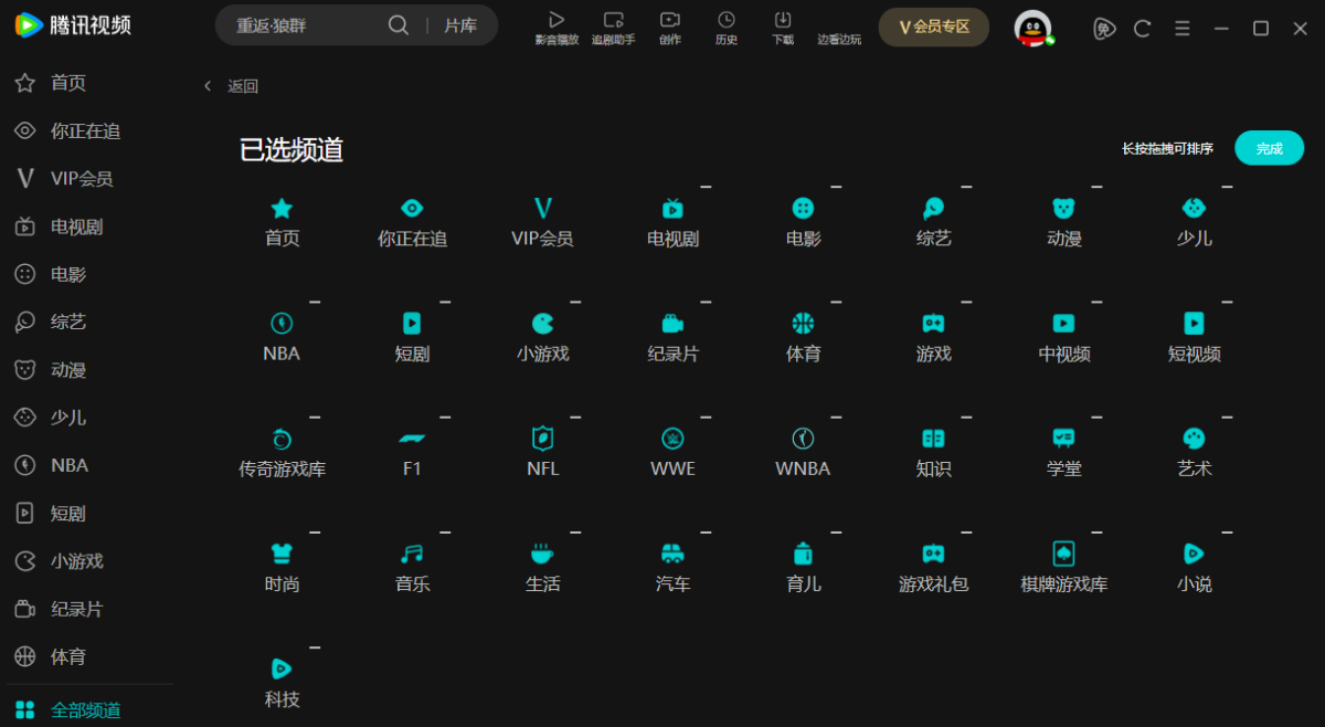 2、频道页面全新改版,沉浸式找片更高效(可自定义导航频道,将喜欢的频道展示在前列)。