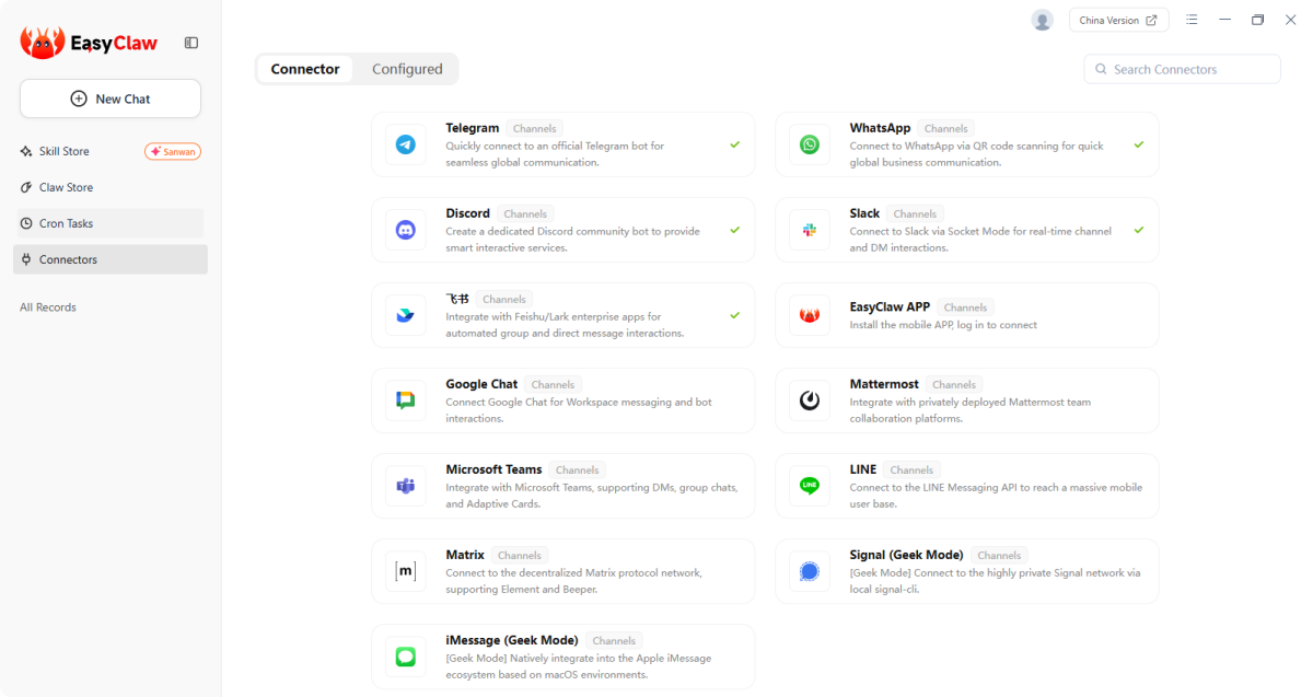 EasyClaw 能像人类一样与系统级 UI 和 Web 应用进行自然交互,原生驱动您的操作系统。