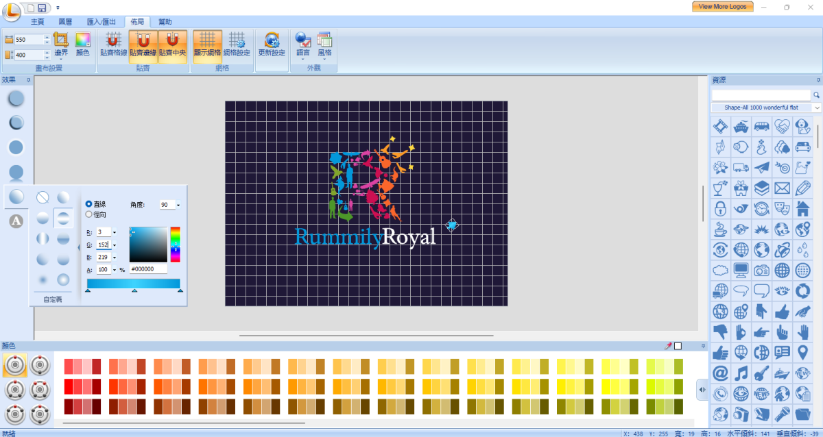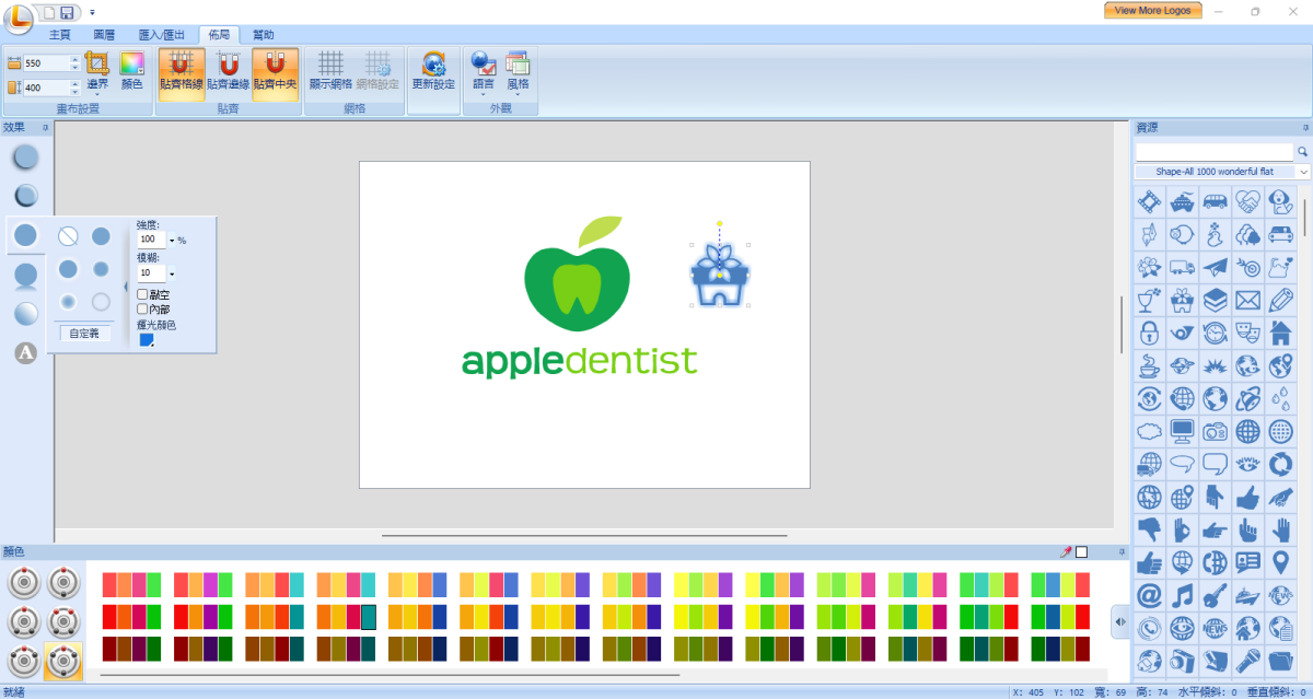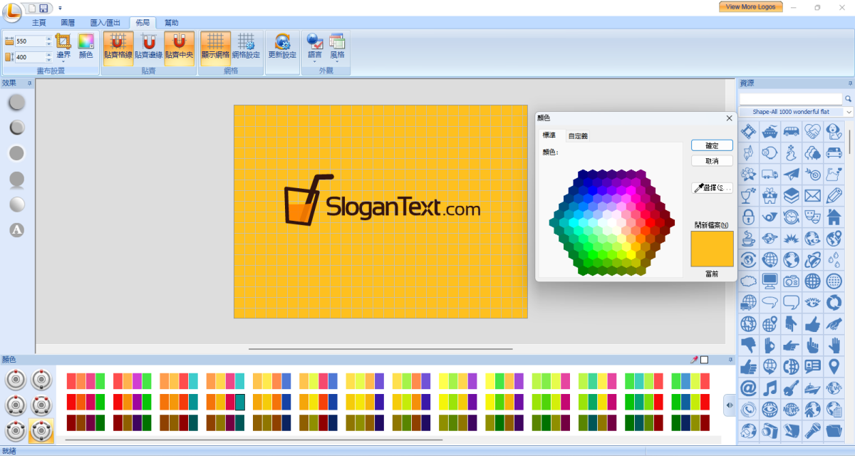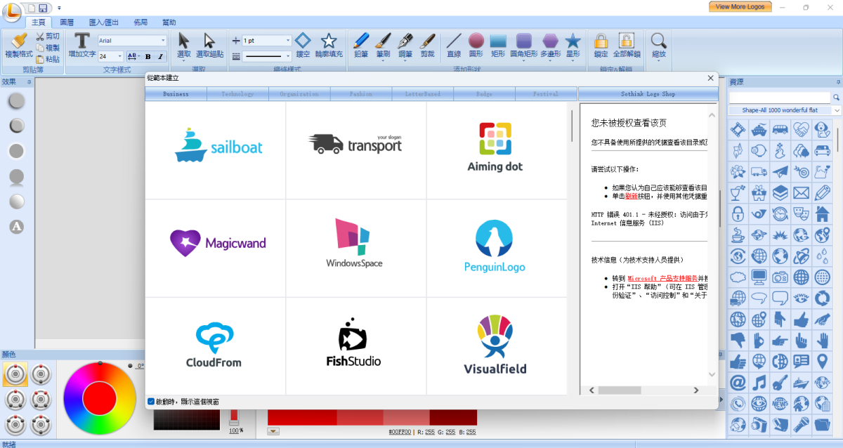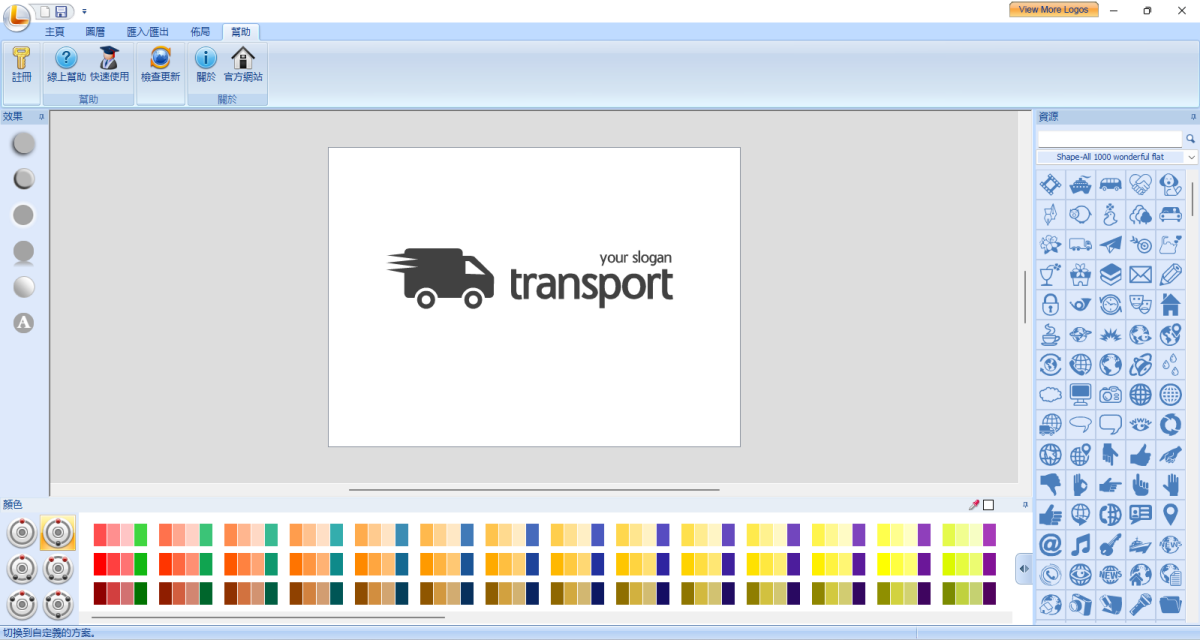 提供450+免费标志模板和超过5000个标志资源。还支持导入PNG/JPG/BMP/GIF/SVG/SWF,用于标志设计。