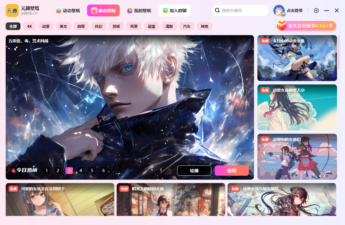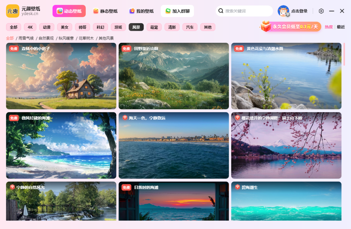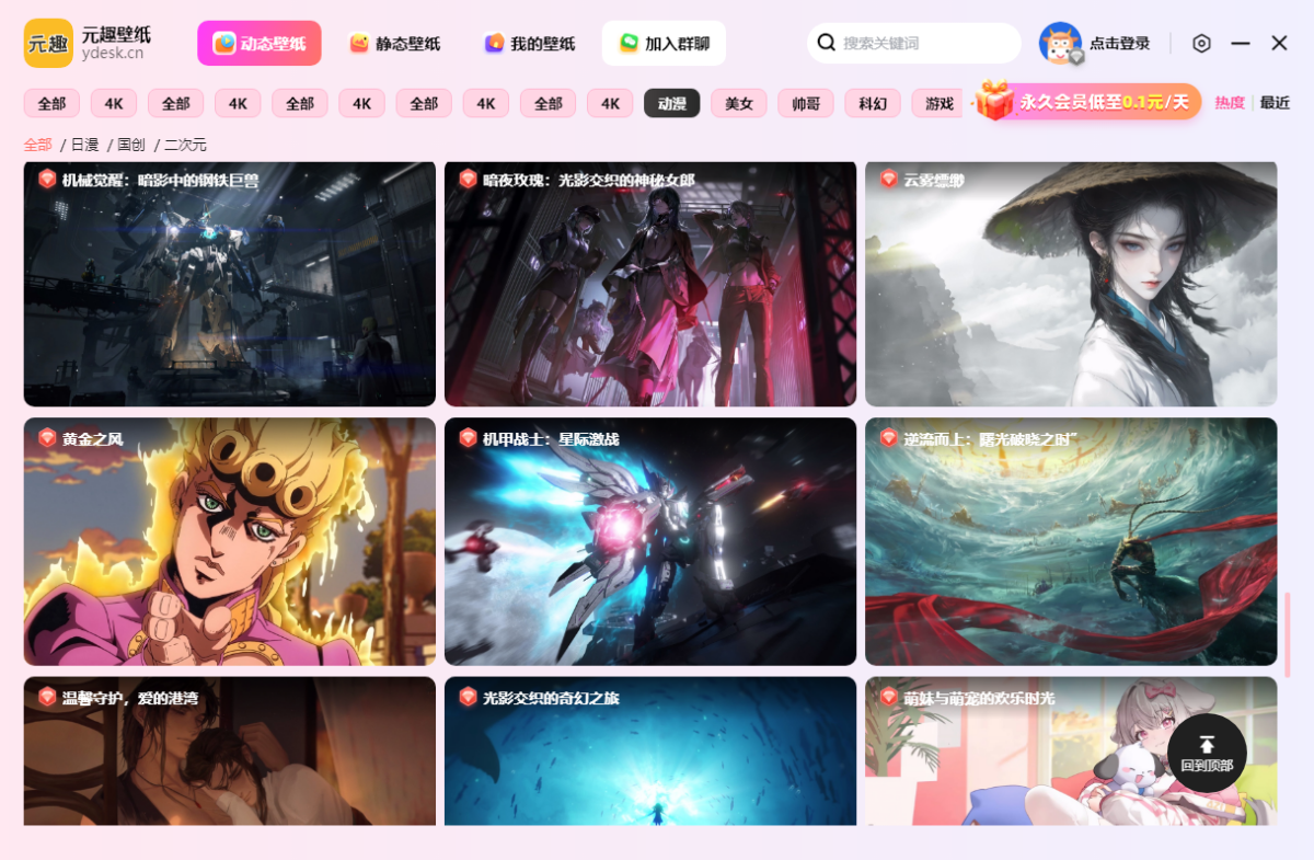 动态壁纸库每日更新,分类详尽,带来生动活泼的桌面体验,仿佛置身画中。