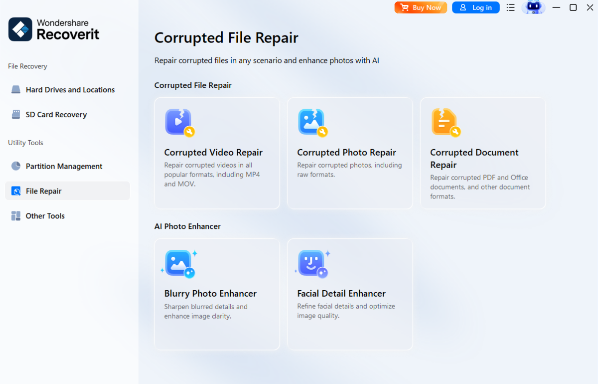 Recoverit 可以通过AIl-Power 帮助您轻松从SD卡和外部设备恢复文件。还支持DJl、GoPro、佳能和索尼等专业数据恢复。