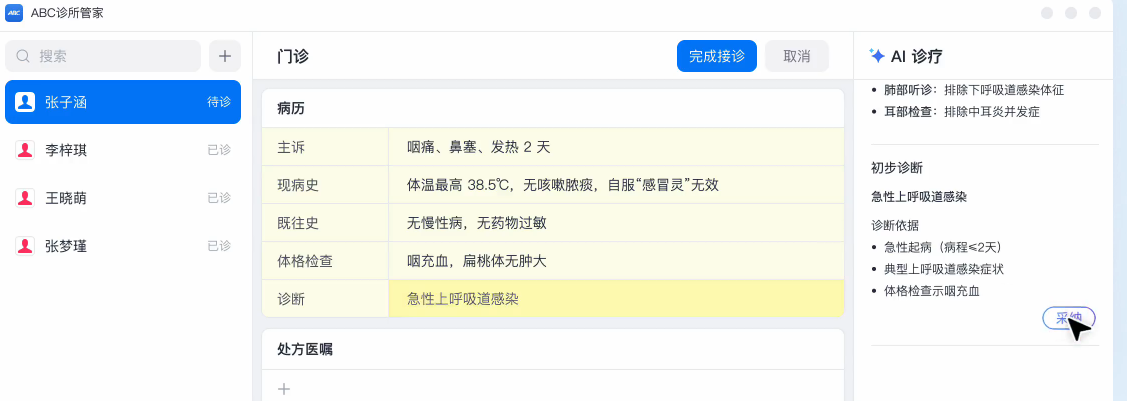门诊病种覆盖 90%+,西医诊断、中医辨证双模式,接诊效率翻倍。