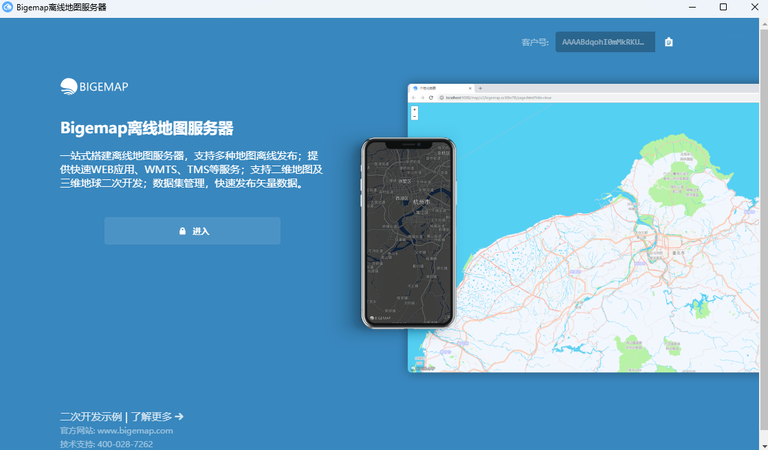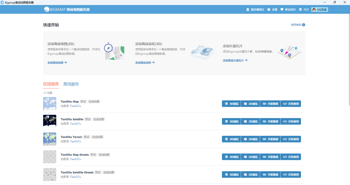BIGEMAP离线地图服务器(Bigemap Server for 3D),一站式搭建离线地图服务器,支持多种地图离线发布;提供快速WEB应用、WMTS、TMS等服务;支持二维地图及三维地球二次开发;数据集管理,快速发布矢量数据。