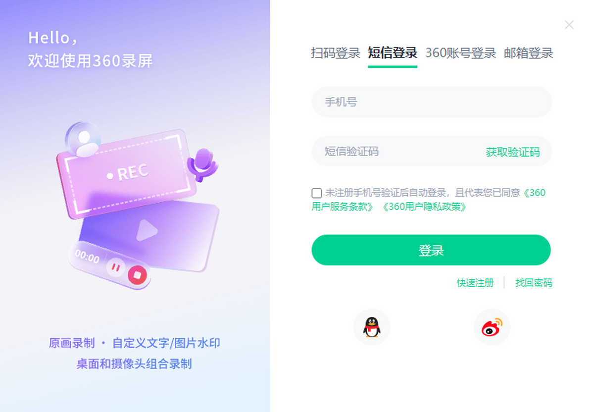 360录屏支持高清原画4K不限时长录制,60帧率录制更流畅,录制后即可自定义编辑视频、添加水印、嵌入摄像头等功能,桌面录制更便捷。一款不限制时长、无水印,支持自定义图片水印、文字水印、嵌入摄像头的Windows录屏工具。