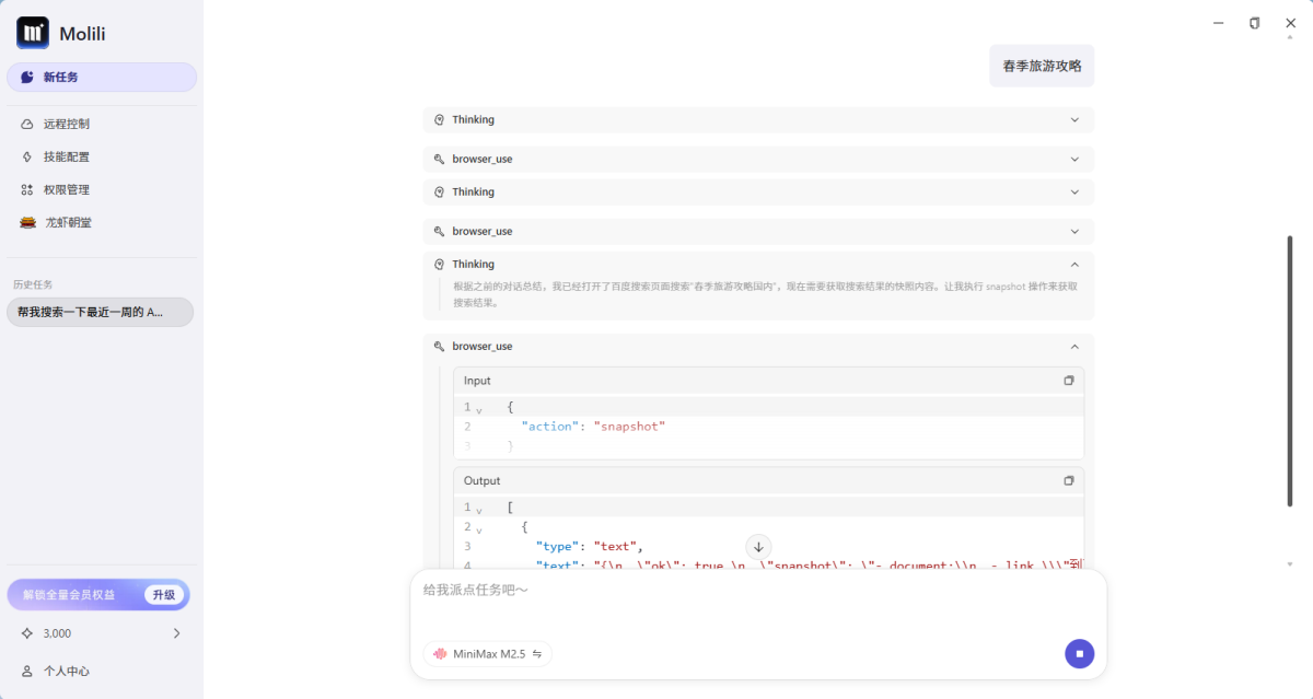 把打开网页、搜索信息、复制粘贴、填表单、整理文档这些小事,全部交给 Molili,自己把时间用在更重要的事情上。