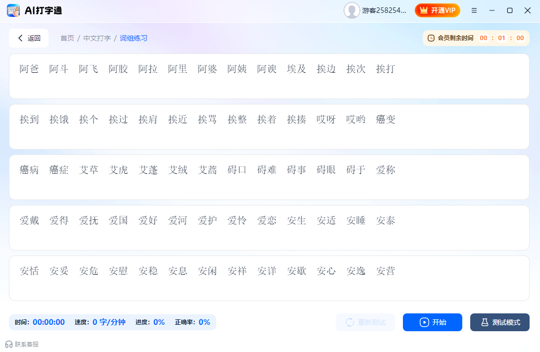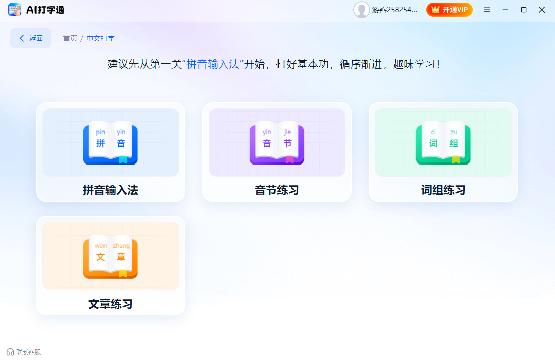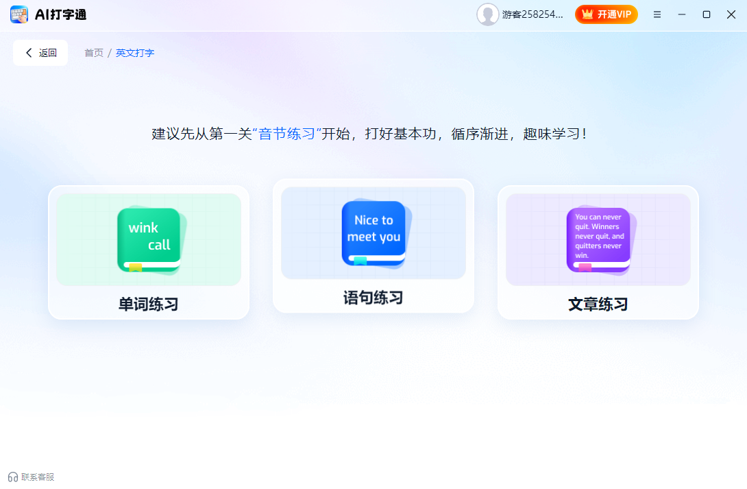AI打字通软件内容低中高三个不同等级打字的教程,优易到难。可帮助零基础的小伙伴逐级练习打字,快速提升打字效率。