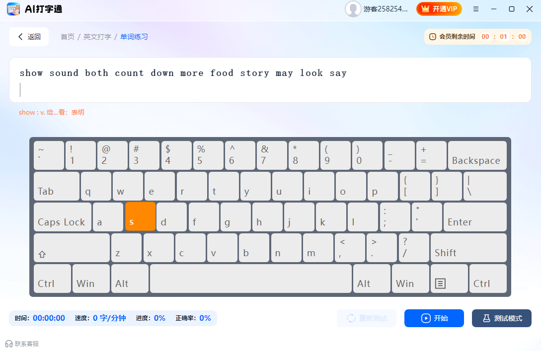 软件重视打字正确指法的养成。通过明确的指法引导,帮助用户从一开始就建立良好的习惯,为后续实现快速盲打打下坚实的基础。