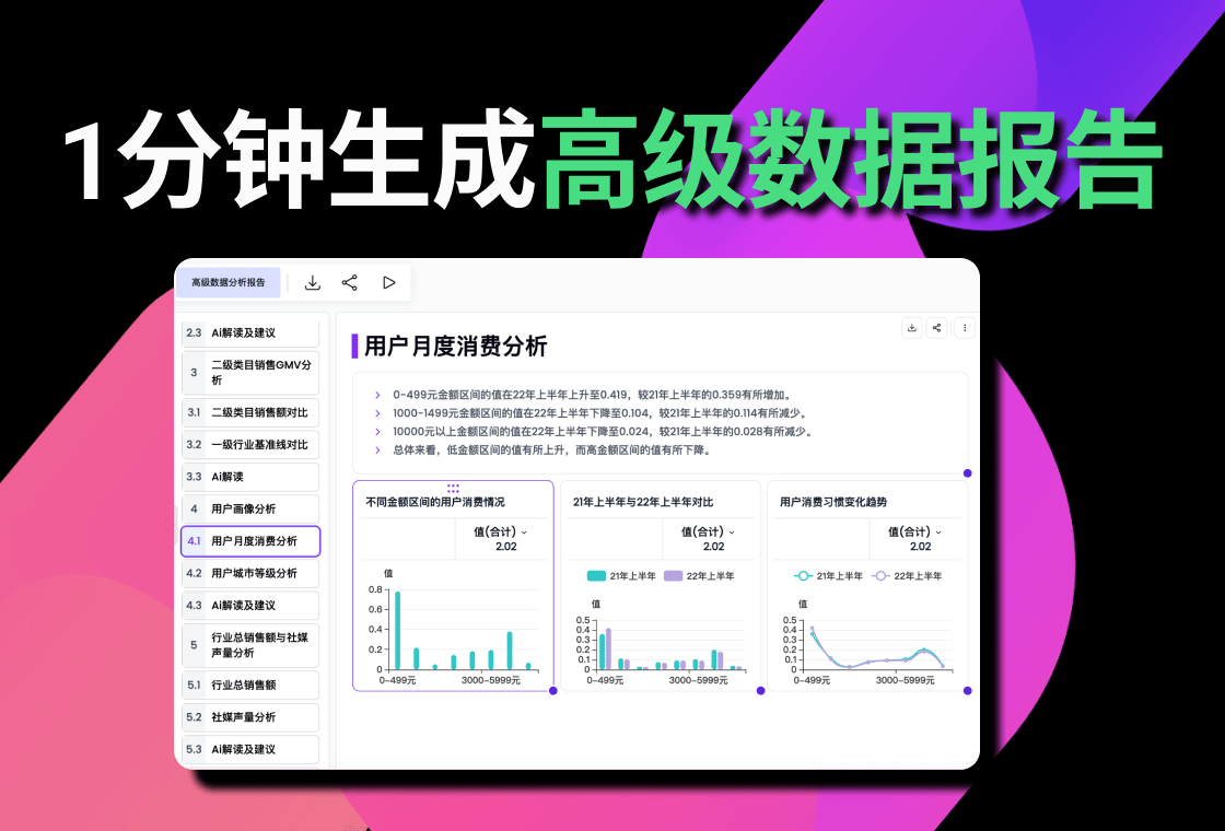 AlgForce Ai是一款专为数据问答和数据报告生成而设计的 AI 助手。使用各种大型语言模型 (LLM),为每个任务找到最佳模型,并根据您的提示编写代码来分析您的数据。最终结果是您无需编写代码和函数,只需要几分钟,即可生成10-25页逻辑清晰、图表丰富、包含文字解读的数据分析报告,让每个人都能快速制作专业的数据分析报告。
