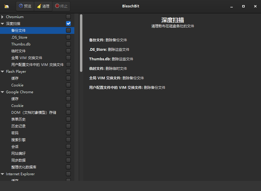 提供“快速清理”与“深度清理”两种预设配置,用户可根据需求选择不同级别的清理范围,无需逐项勾选,即可一键完成系统优化。