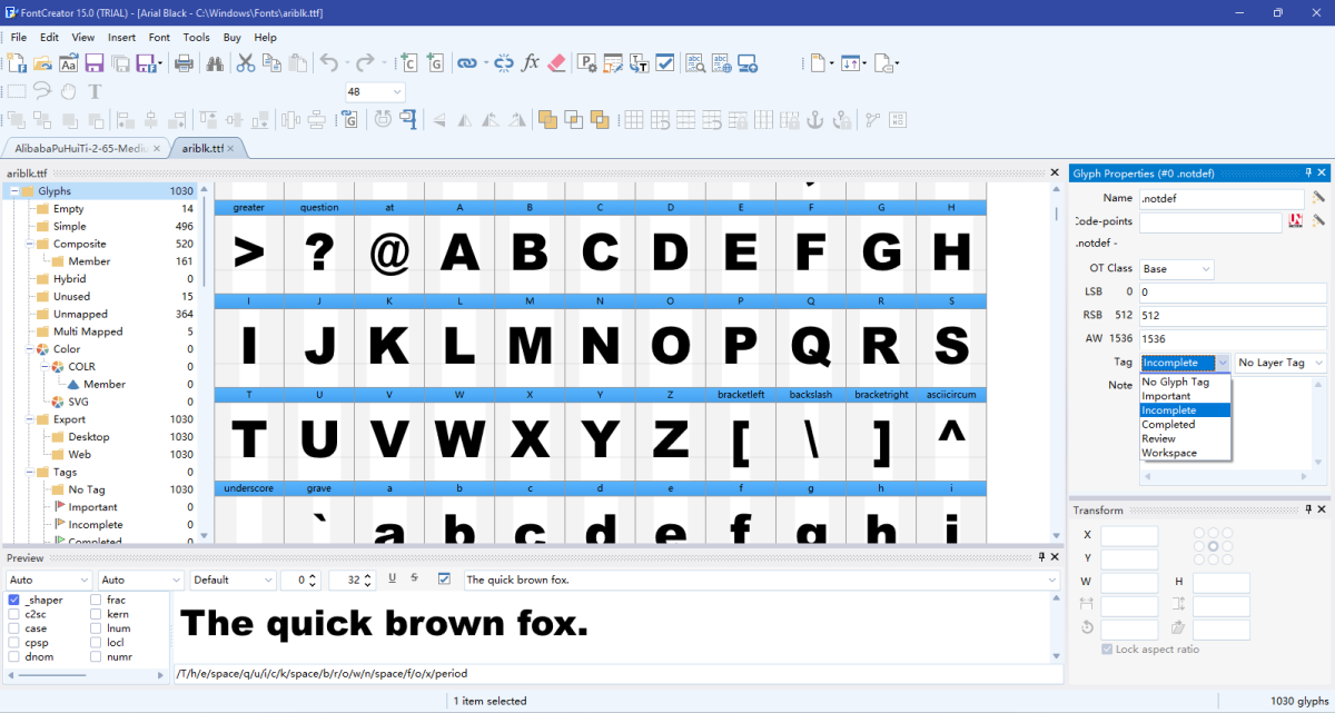 FontCreator 允许您修改现有字体(无论其多么高级或复杂)并仍保留所有 OpenType 布局功能数据的字体编辑器。