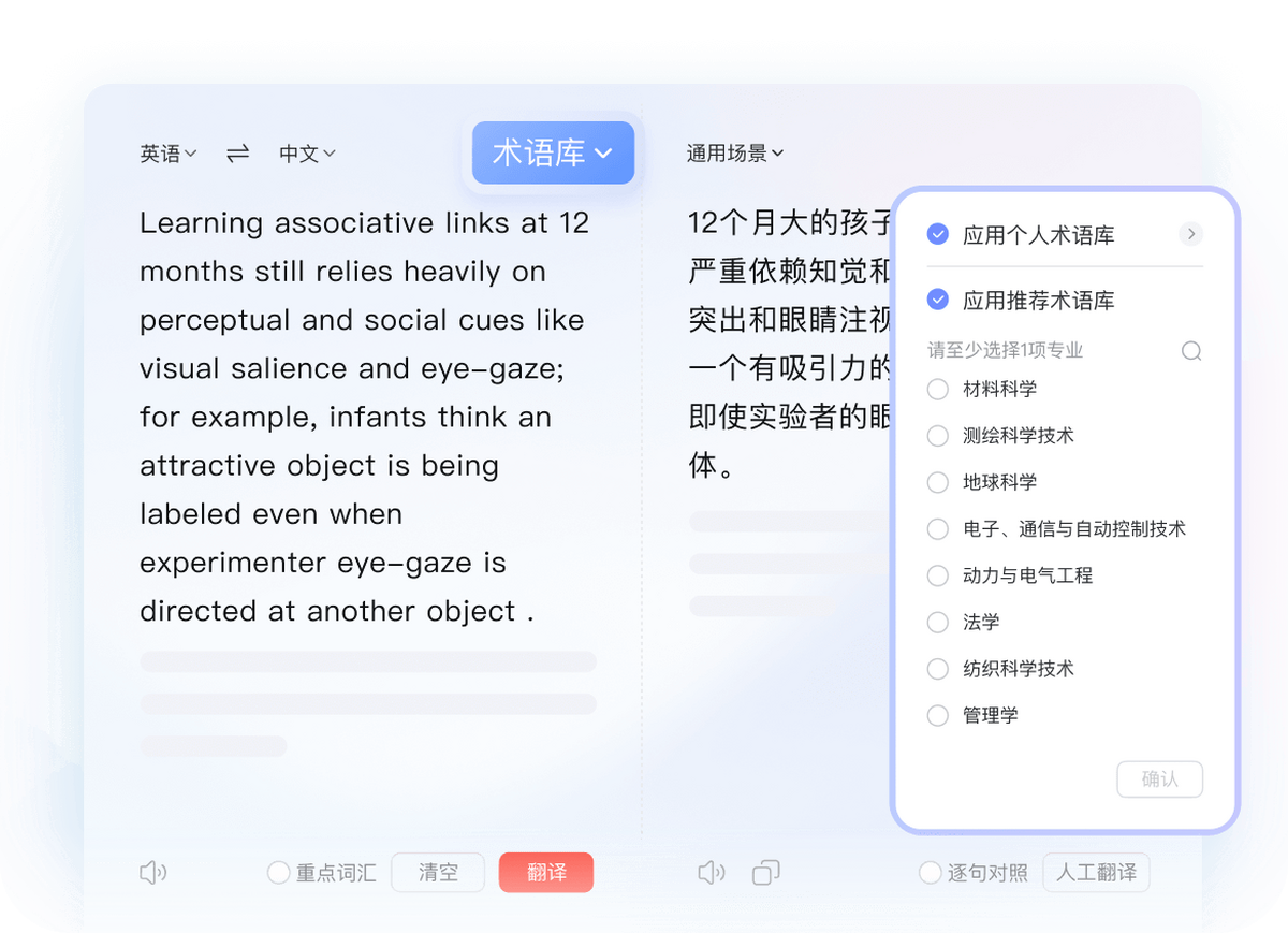 ○支持医学、计算机、金融经济等专业领域翻译