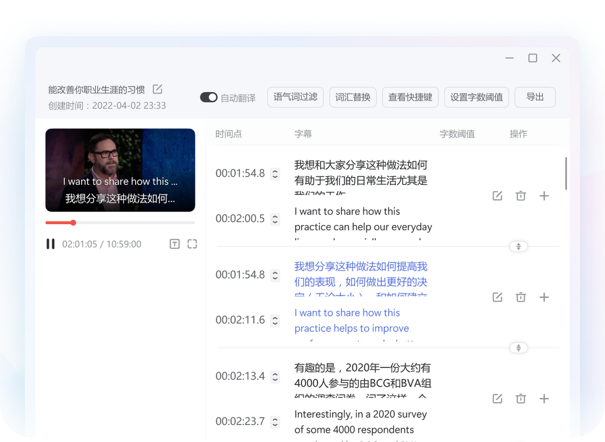 ○自动生成字幕时间轴,一键导出srt字幕文件