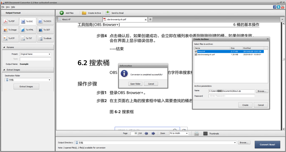 可以在瞬间将一个文件转换为多种文本格式,支持PDF、HTML、RTF、DOCX等格式。其他重要格式包括EPUB、MOBI等。可以将文档转换为PDF、DOC、DOCX、HTML、ODT、RTF、TXT、EPUB、MOBI、JPG、PNG等格式。