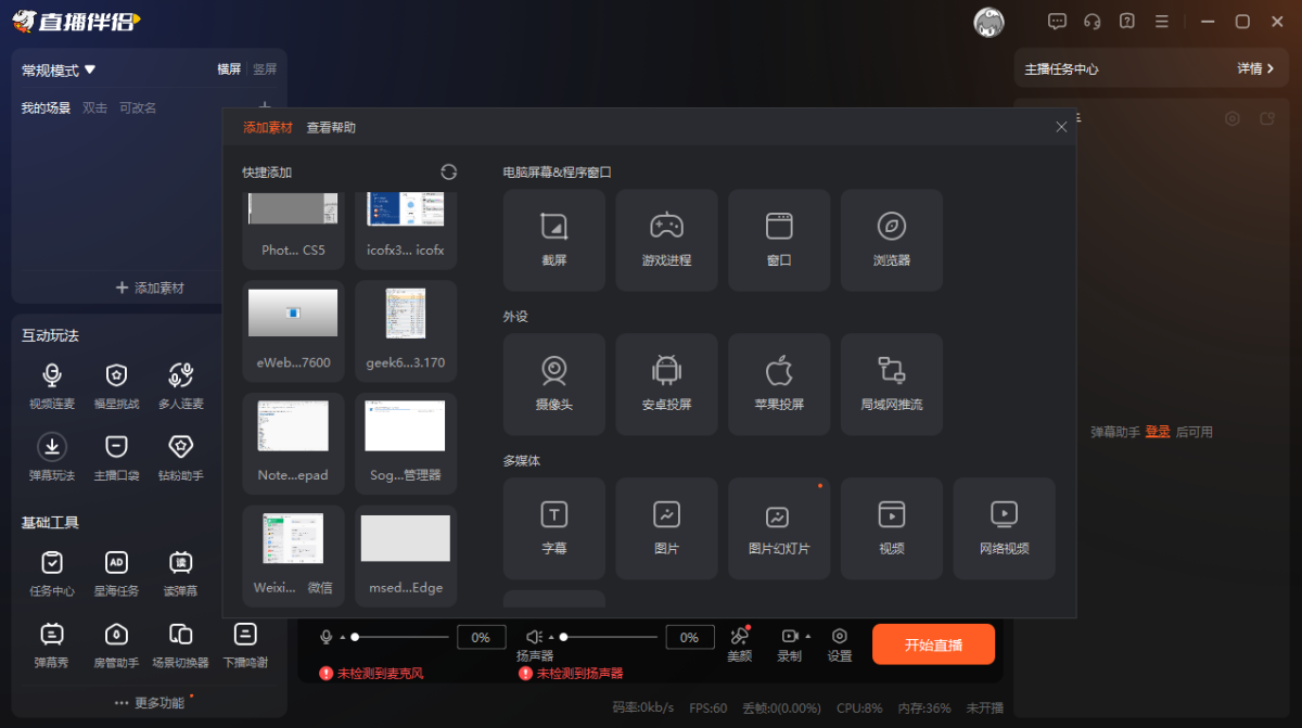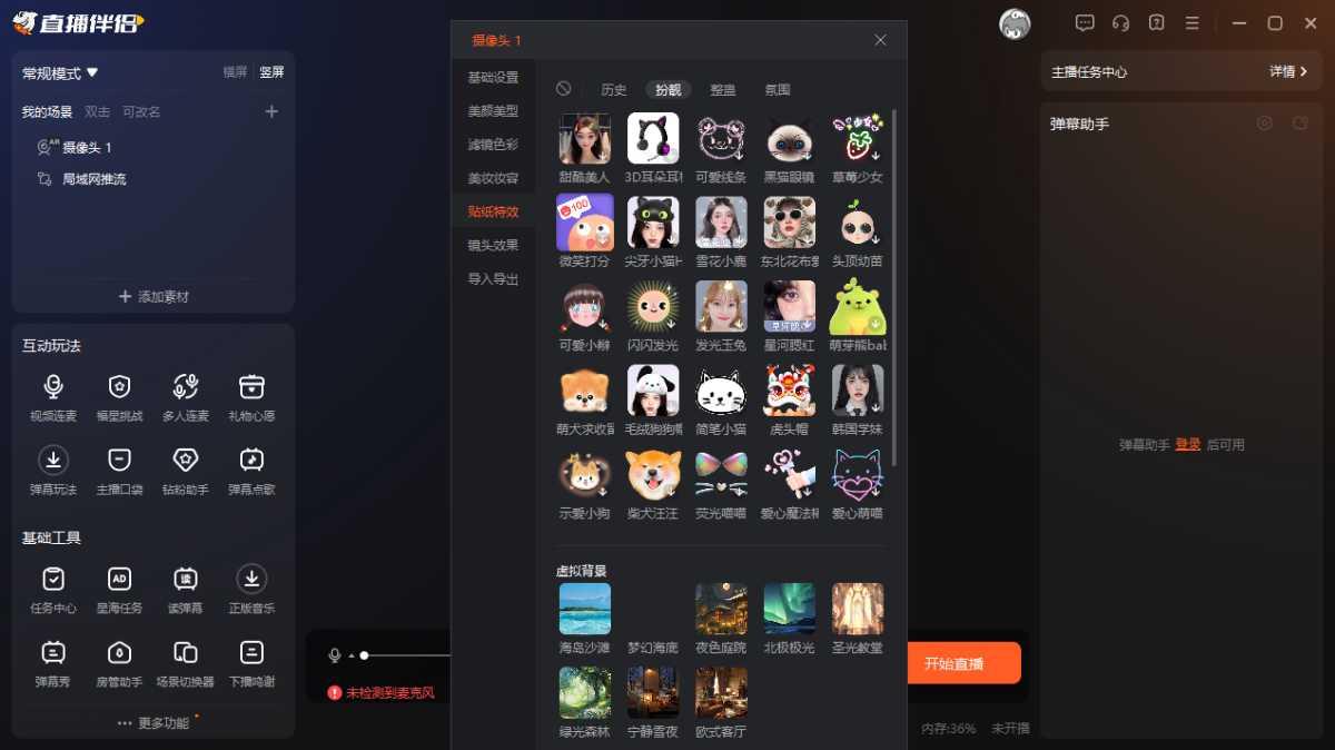 直播模板:对直播间非画面呈现,如互动功能、礼物功能等有影响,一般正能量等特殊分区会用,普通游戏/娱乐等内容不用太管