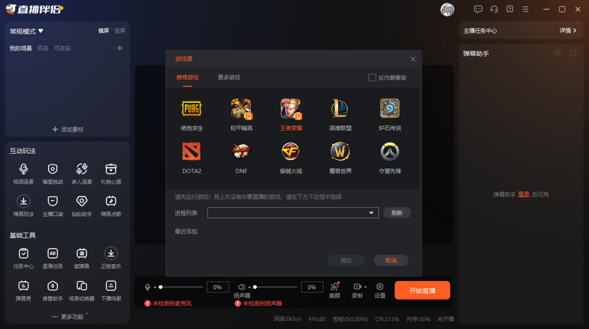 自动检测游戏,免设置一键开播