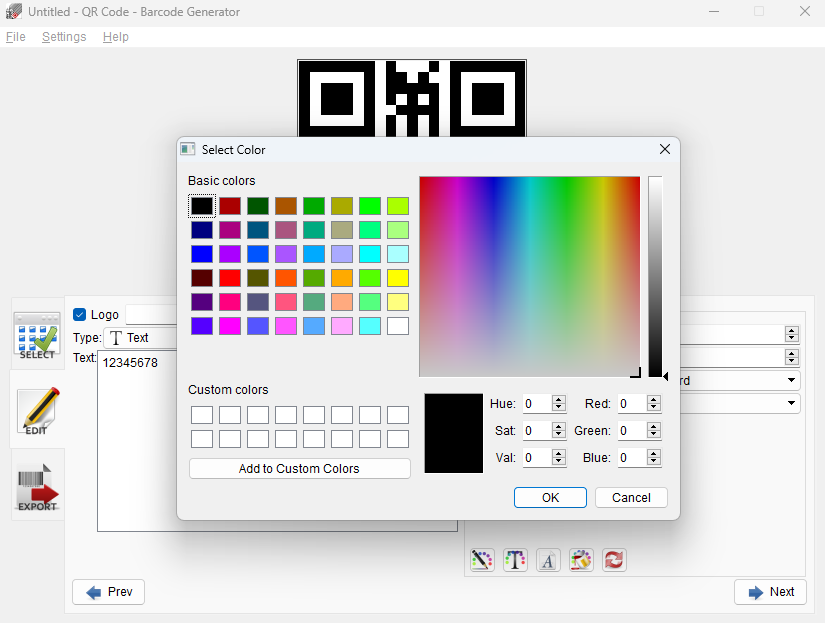 3.可以设置为条码数据、条码颜色,以及是否显示任何辅助文本、文字字体或颜色。