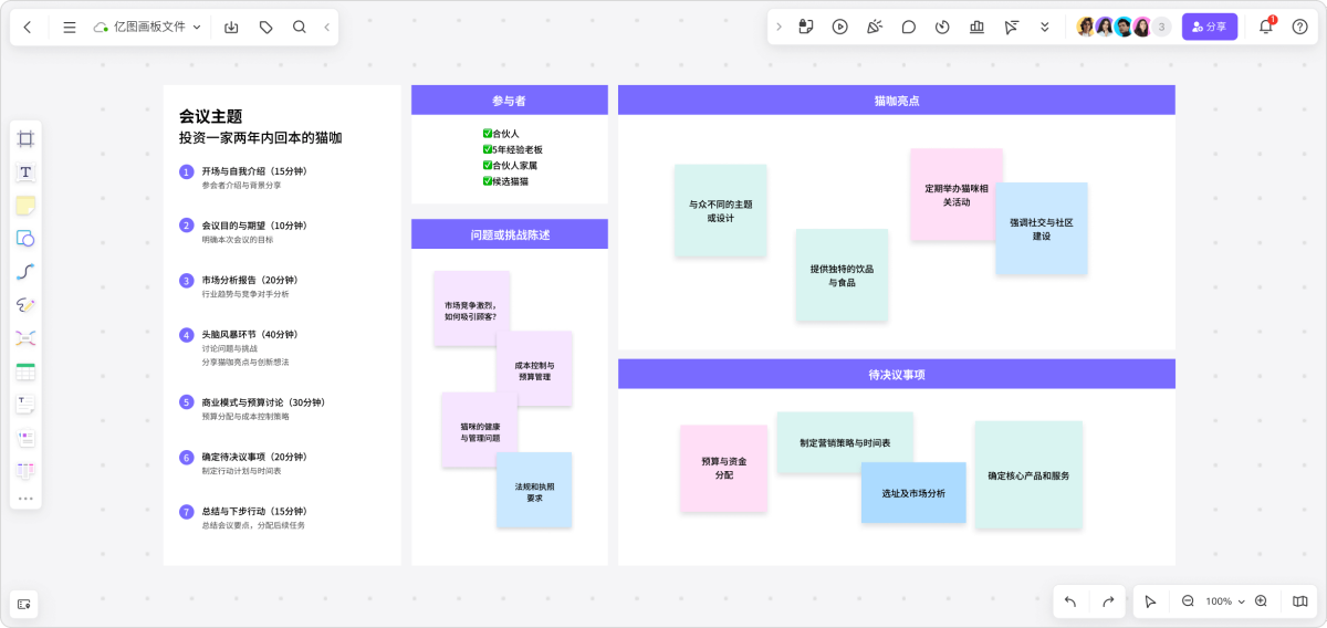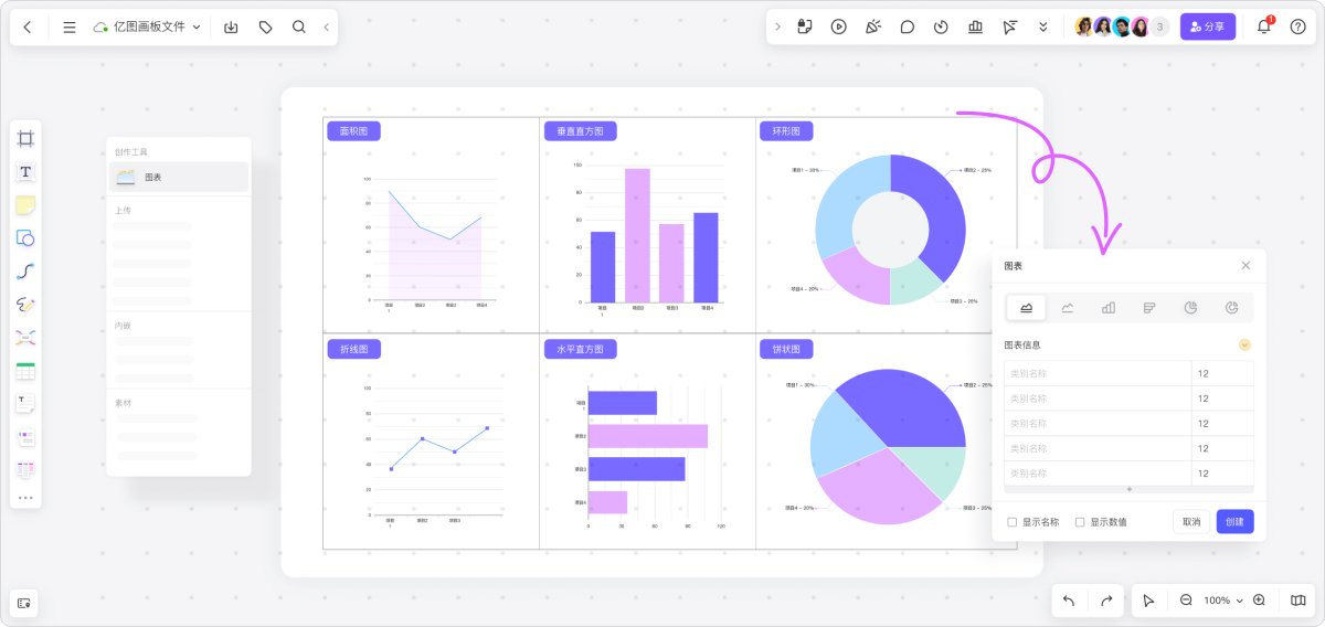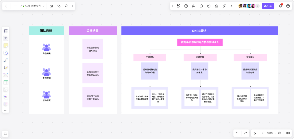 功能包括:协作文档、项目管理、OKR总结、头脑风暴、各类图表