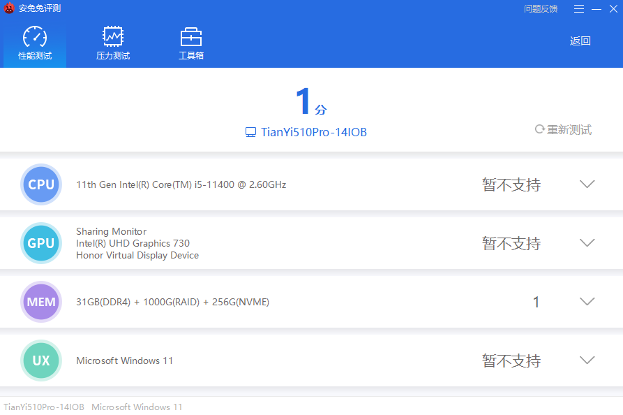 2、全面的硬件性能评测: