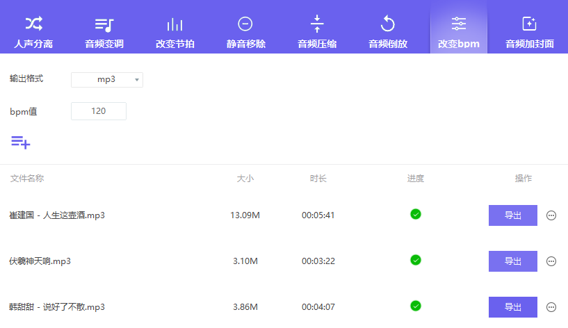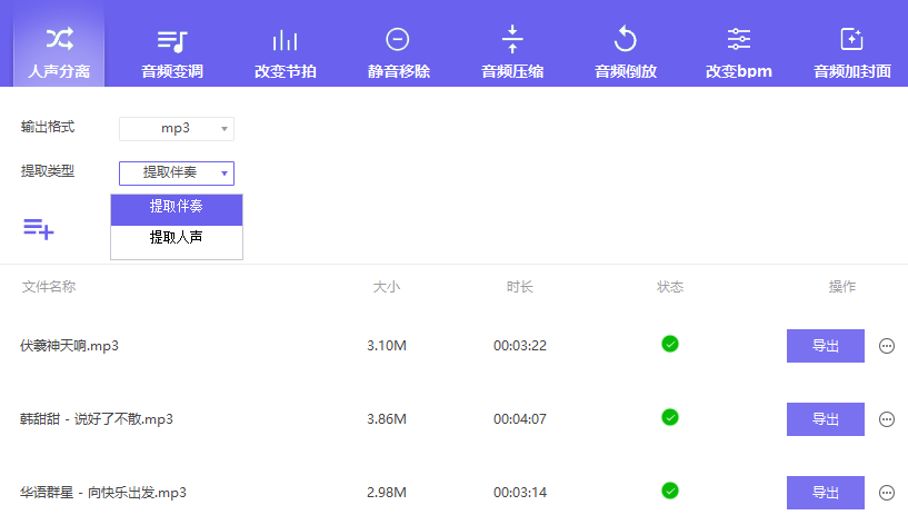 除了提取伴奏等特色功能外,还具有音频变调等功能。