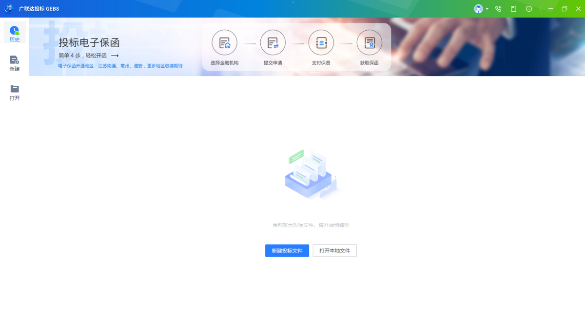 投标单位项目经办人可使用新建功能,新建电子投标文件;
