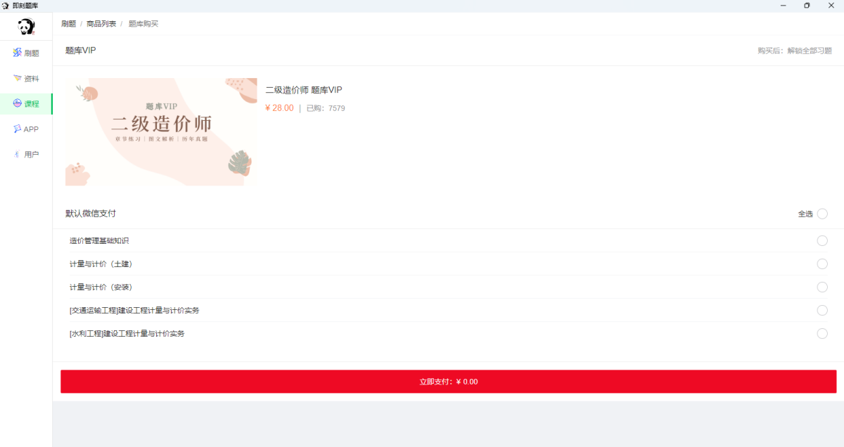 主要包含:建筑工程、财会金融、职业资格、技能职称、医药卫生、考公考编、学历提升;如:一建、二建、教师资格证、注册安全工程师、经济师、演出经纪人、导游证、职业(护士,药师)、银行从业、社会工作者 等近千个热门科目。