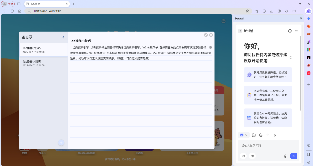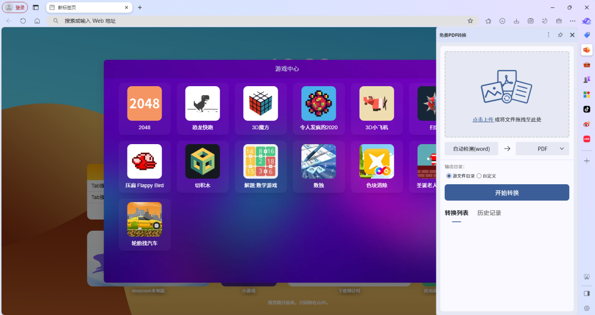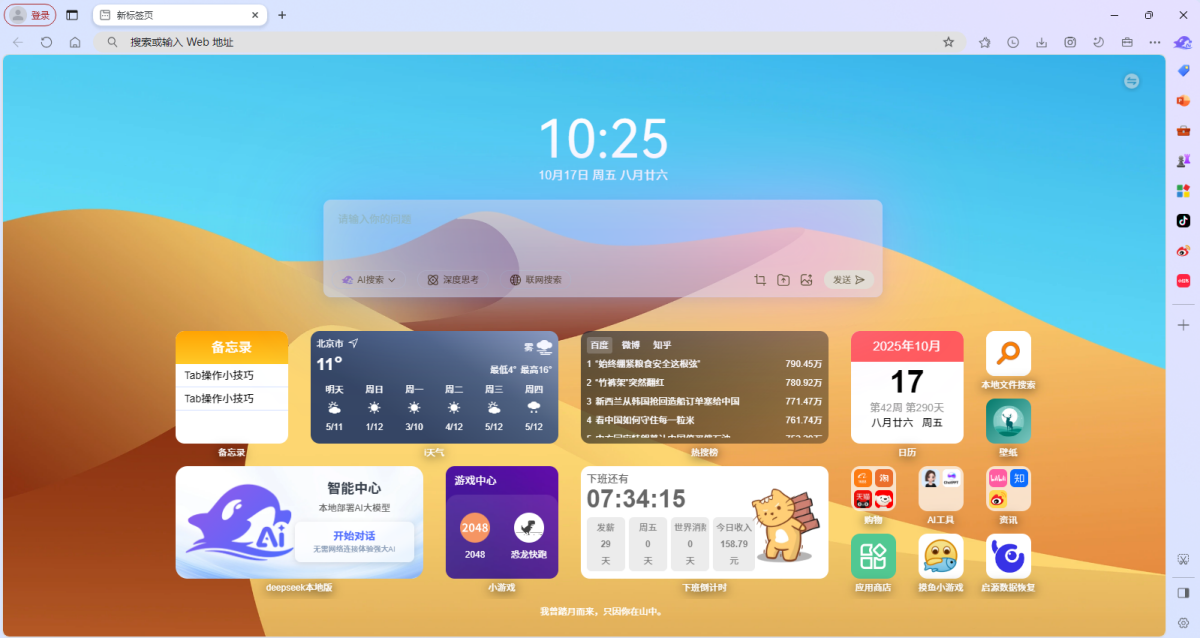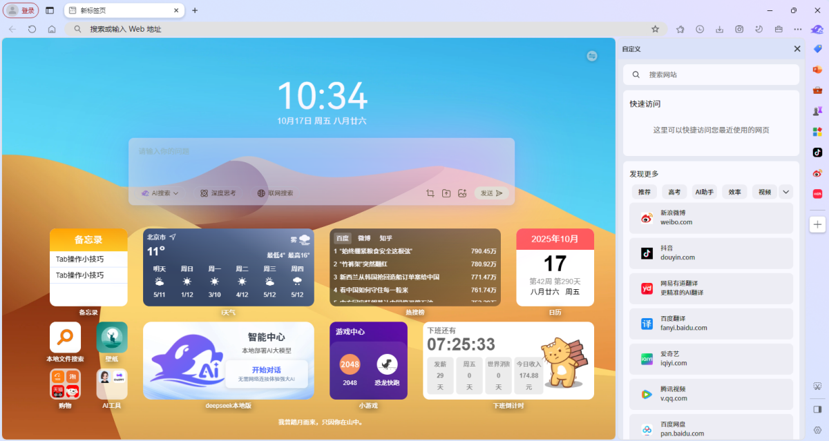在桌面提供实用工具与自定义网页入口,为你提供更多便捷高效的使用场景。