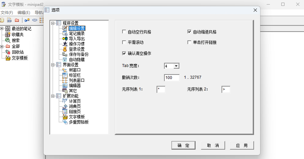 minipad2 可作为资料收集面板。使用“选项”-->“程序设置”-->“笔记摘录”中设定的一系列快捷键,可方便地将所浏览的网页或文件中的内容抓取到 minipad2 的笔记页中,或直接抓取并保存到 txt 文件中。