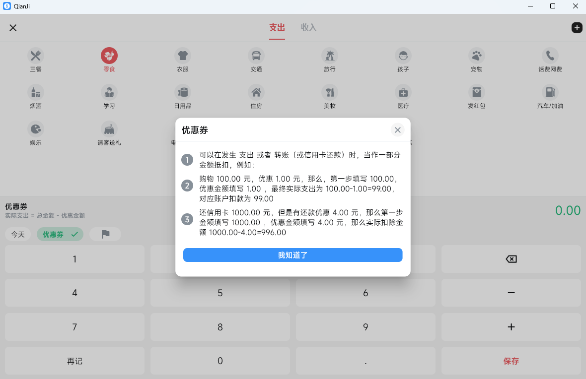日历视图、桌面小组件、账单图片、账单搜索、千分位符、密码保护、秒开模式等。