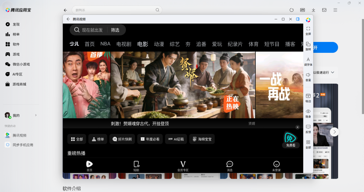 在星动下载站下载最新安装包,按提示先安装应用宝电脑版(已安装会直接调用打开,未安装应用宝时,手机APP无法独立在电脑上运行),应用宝安装完成后,进入应用宝,继续等待软件安装,完成之后登录账户即可开始使用