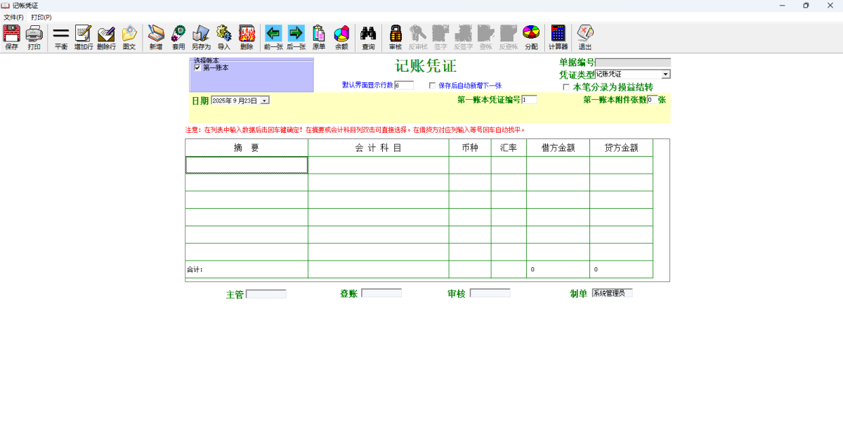 ●系统自动识别并初步审核记帐凭证,对不符合会计记帐方法的方式给予自动提示,严格遵循会计记帐原则:"有借必有贷,借贷必相等";