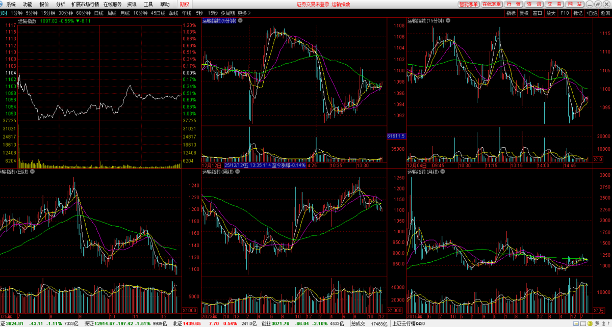 将屏幕等分成小窗,每个小窗显示一只股票的价量走势,方便您同时观察多只股票(最多可同时观察十六只股票)。支持多个股票的走势图同列和分析图同列。多走势图同列与多分析图同列的可用F5一键切换。