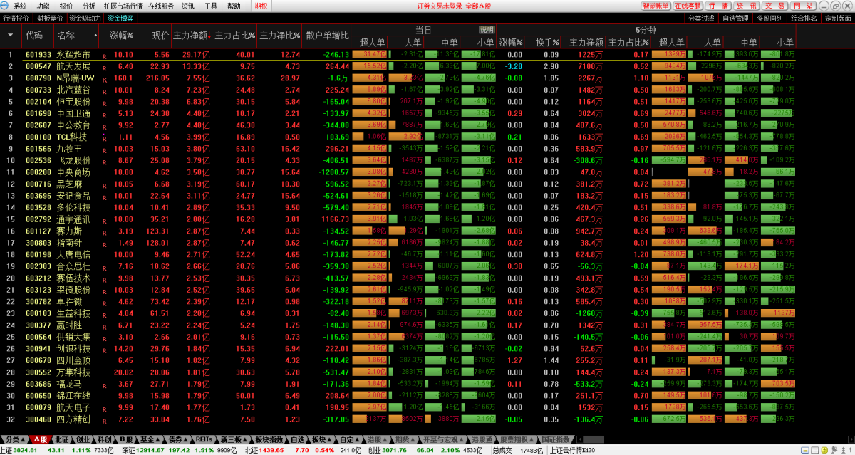 行情主站采集所有客户端的人气,按照一定算法统计出个股的关注度和共鸣度,告诉您近期市场关注的热点可能在哪里出现。