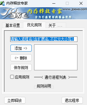 3、内存释放专家还有一个“优化规则”中可以添加应用规则;