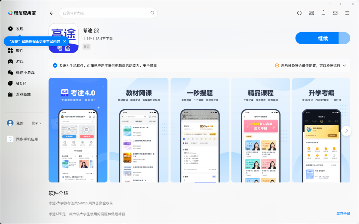 在星动下载站下载最新安装包,按提示先安装应用宝电脑版(已安装会直接调用打开,未安装应用宝时,手机APP无法独立在电脑上运行),然后在应用宝里安装软件,安装好后,直接打开登录就能使用了。